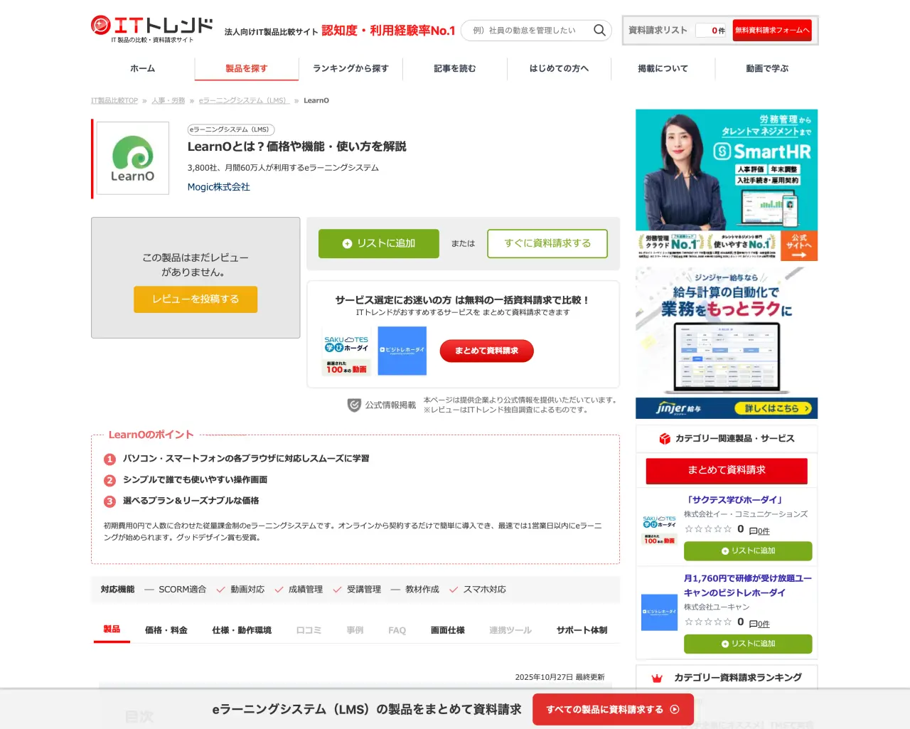 利用率No.1の法人向けIT製品の比較・資料請求サイト『ITトレンド』にてLearnOの解説が掲載されました。