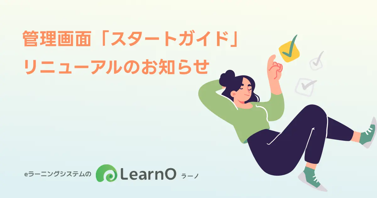 こちらにより、初めてLearnOを運用される管理者様でも、迷うことなくスムーズにセットアップを完了させることが可能となります。 本機能が、Learno 管理業務の導入コスト軽減につながれば幸いです。
